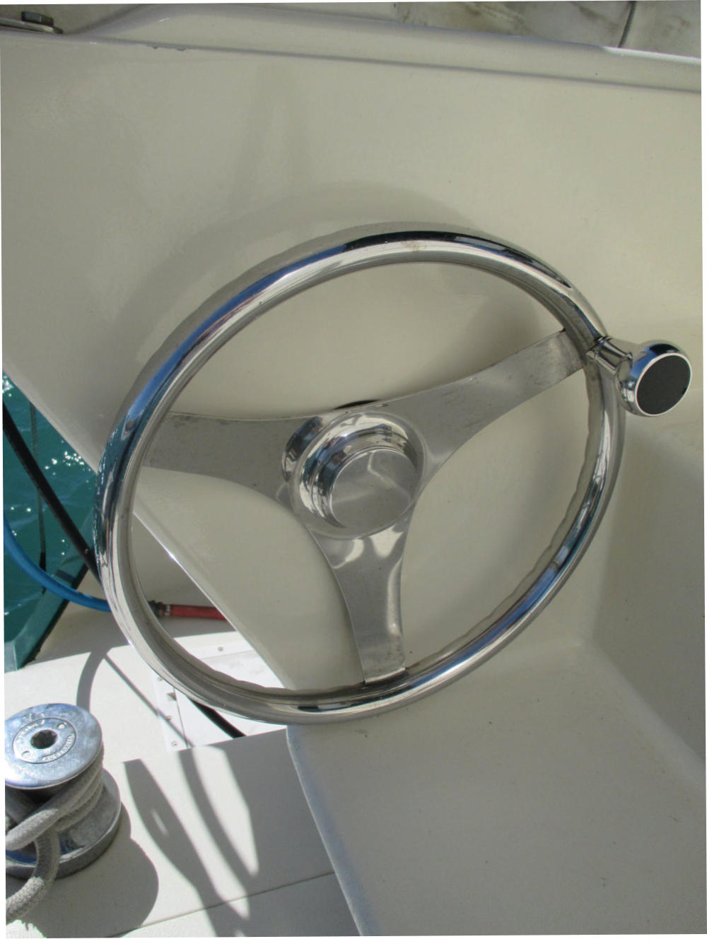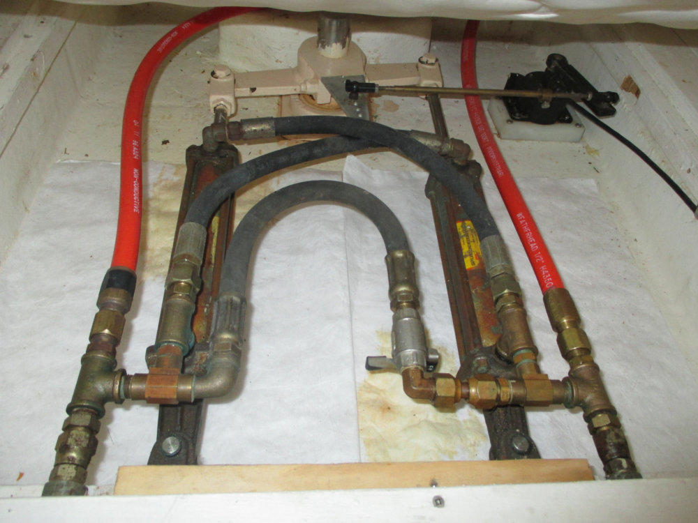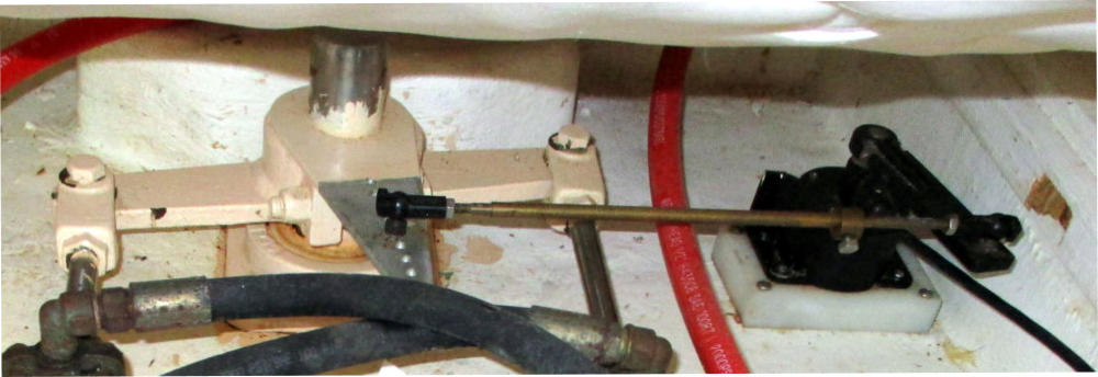 Mochuisle’s steering system is made by Teleflex - Capilano Hydraulic Steering Systems. It is a two station system with a steering wheel in the pilothouse and one in the stern. There are two opposing rams on the steering quadrant which is located beneath the master bed. The system uses Dextron Type 2 transmission fluid. There is a cross over valve, which is used when filling the system to help remove air, or when removing the rudder, to relieve any strain on the rams. Also, it can be be opened for easy of steering if there was a system failure and emergency steering was necessary. The whole system has always functioned perfectly.The counter balanced rudder is 3/8 steel plate with a 1 3/4” SS shaft and a coupling at the upper end for ease of removal. The rudder is glassed over and faired to improve aerodynamics. The pilot is a ComNav Marine 2001 Autopilot.It has a key activated Watch Alarm feature anda 211 Full Function Remote Control. It uses an Octopus Pumps Model 2012 - 12 volt reversinghydraulic pump.