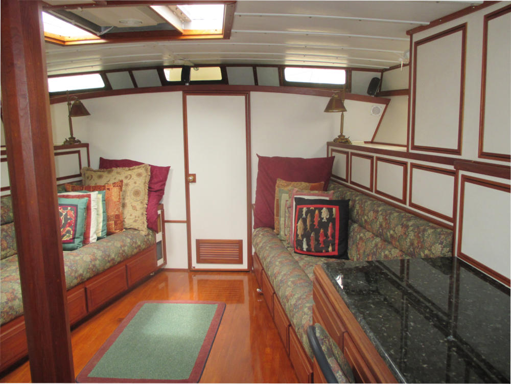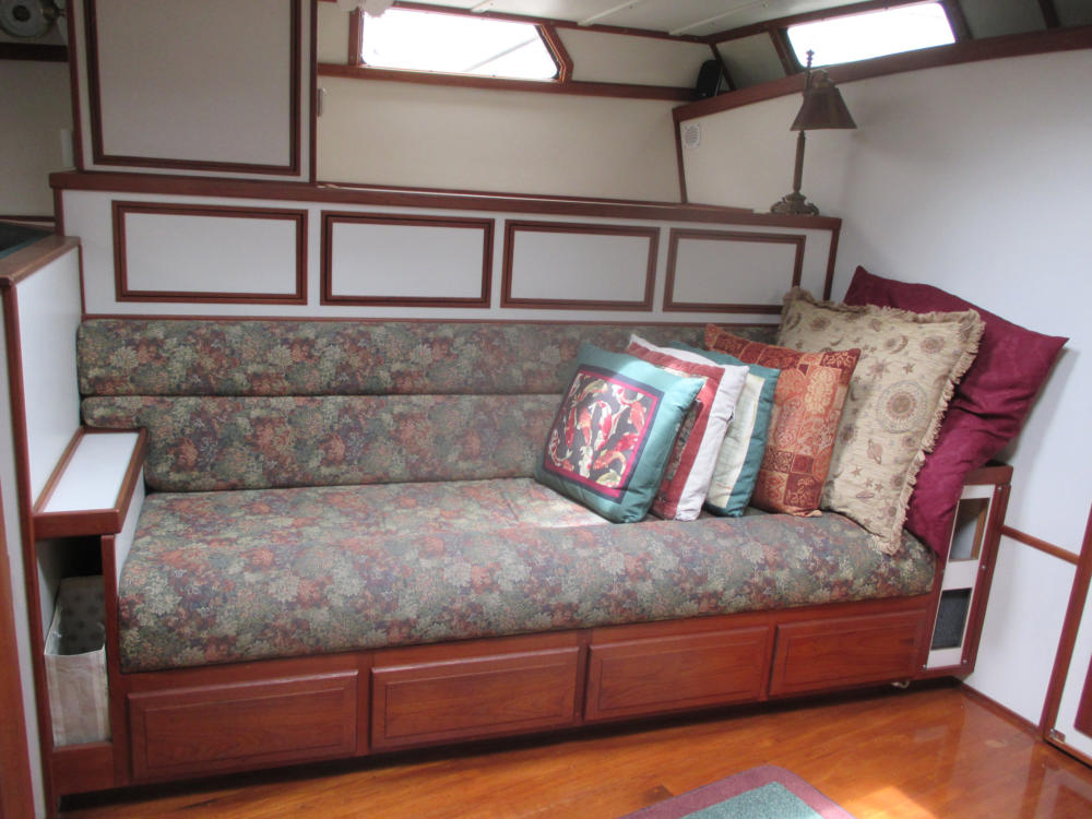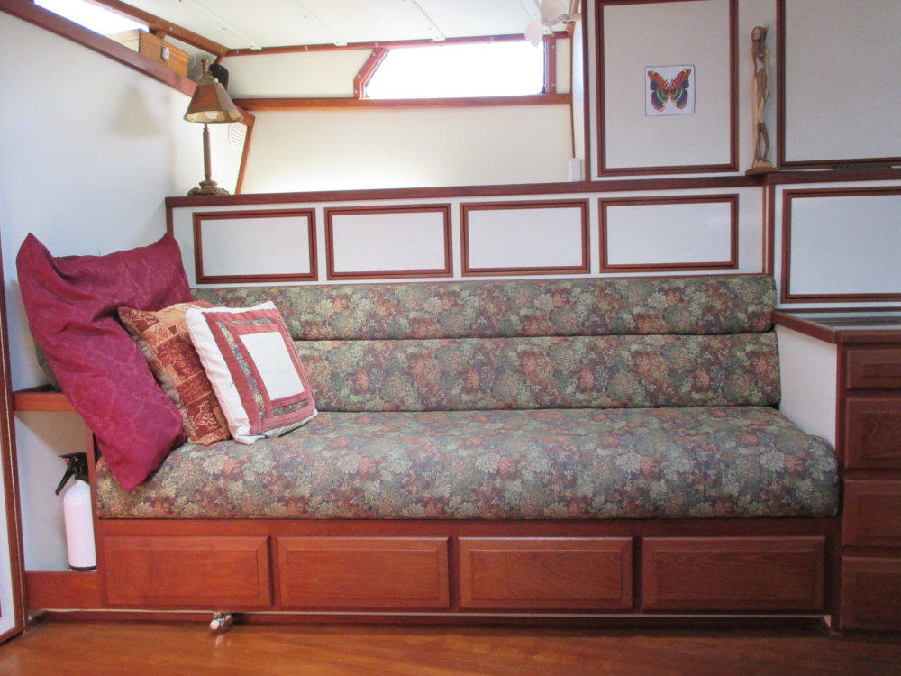 There are 4 storage cupboards behind each couch. On the port