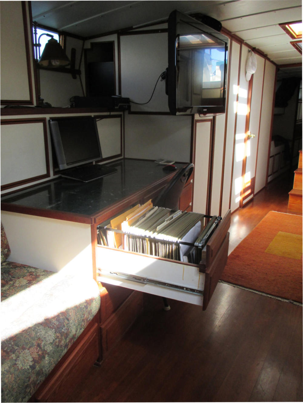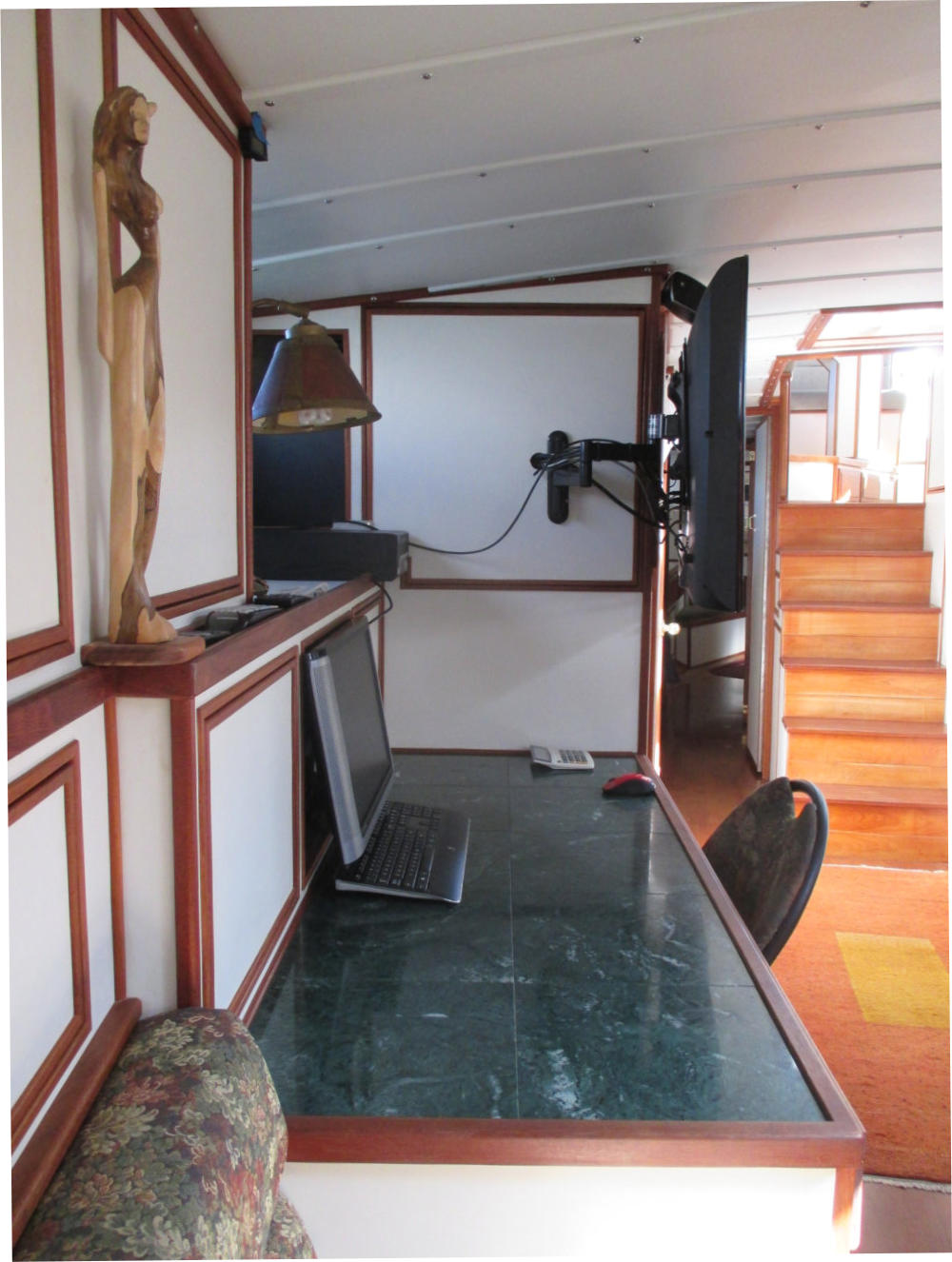 The 5’ X 2’ teak and granite desk